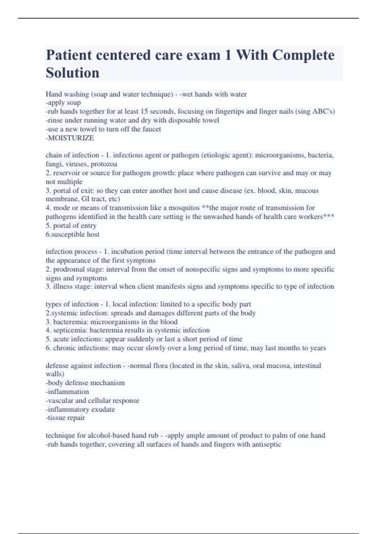 Patient centered care Exam Package