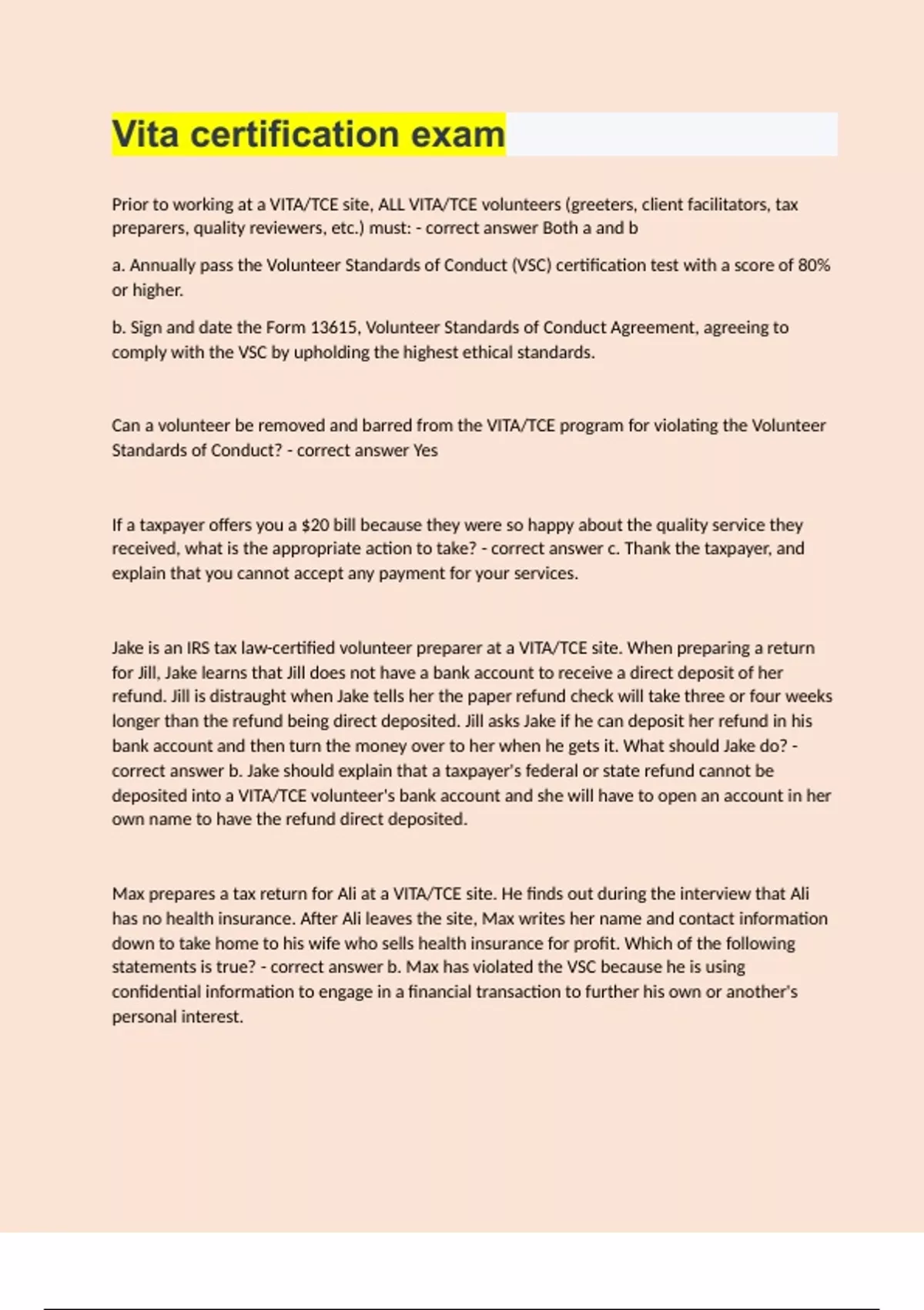 VITA Intake Interview Review Test Questions