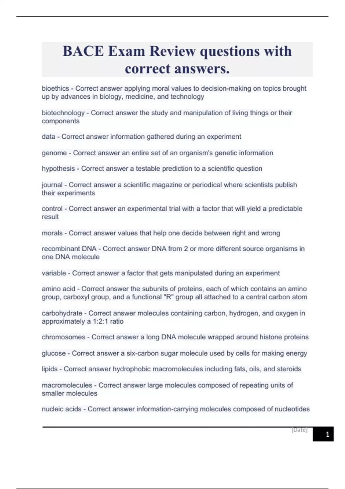 BIOTECHNICIAN ASSISTANT CREDENTIALING EXAM (BACE) TESTS COMPILATION BUNDLE BIOTECHNICIAN ASSISTANT CREDENTIALING EXAM (BACE) TESTS COMPILATION BUNDLE