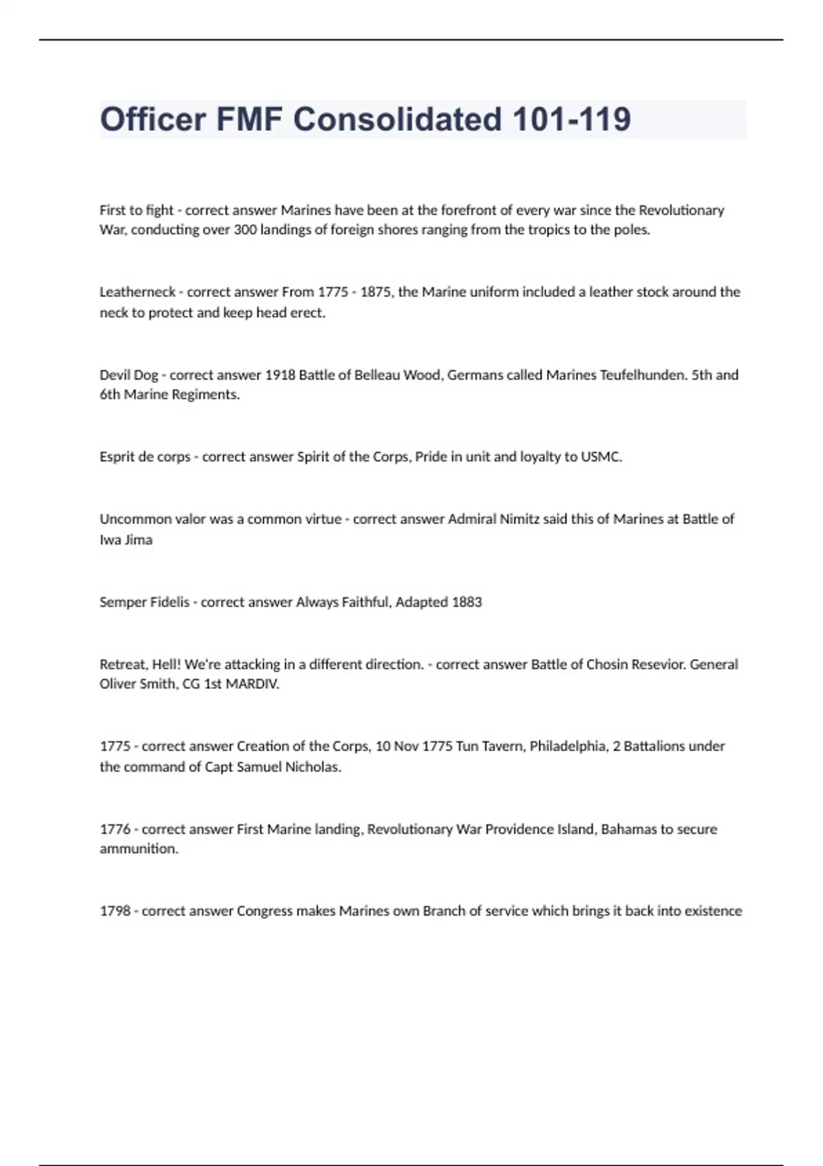 Officer FMF Consolidated 101-119 question n answers graded A+ 2023