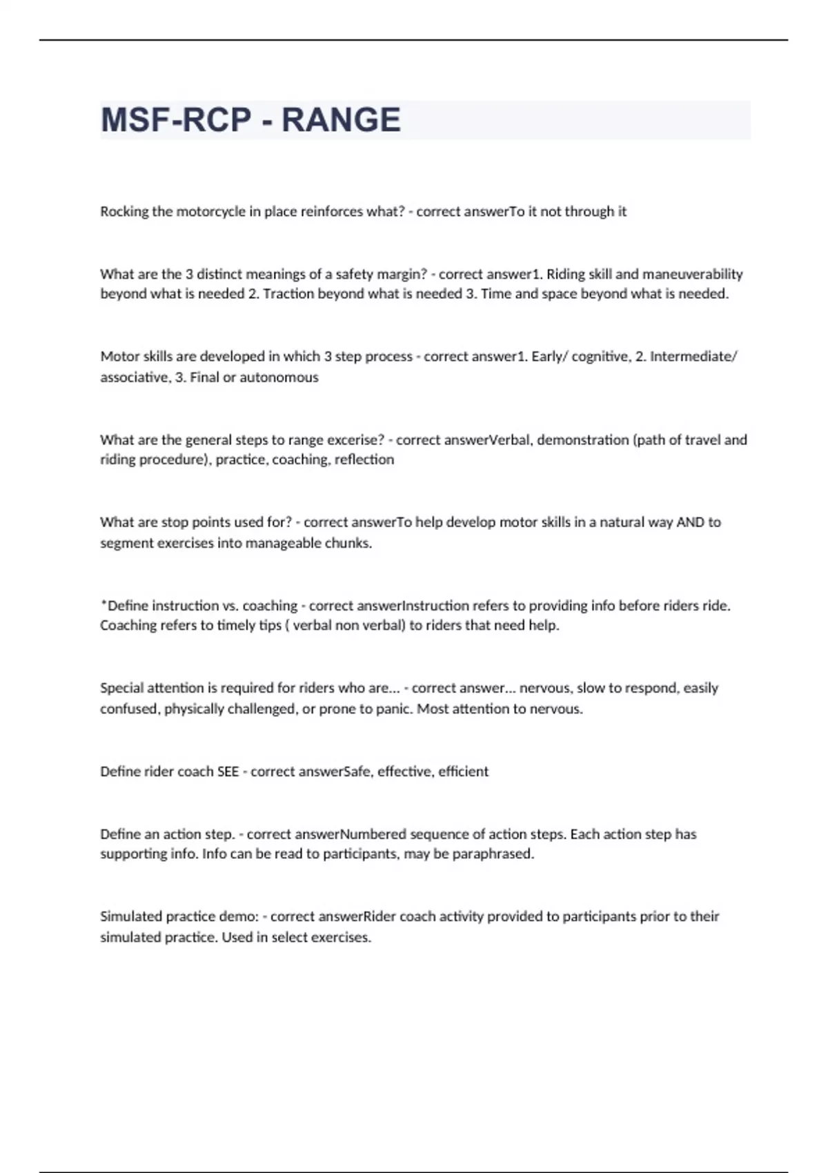 MSF Basic Rider Course BUNDLED exams 2023 with 100% correct answers