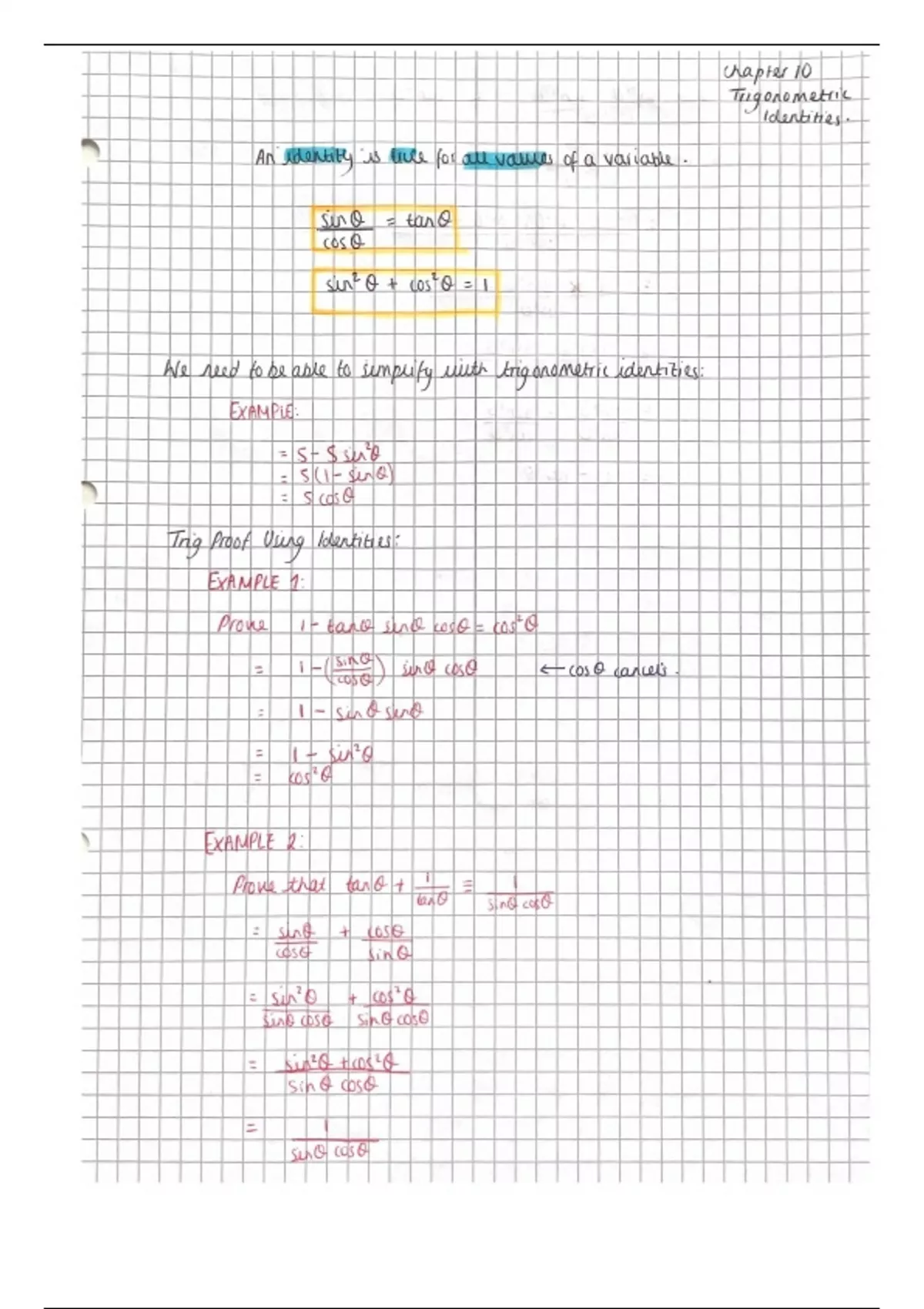 Lesson notes: Mathematics - Pure Maths; Trigonometric identities