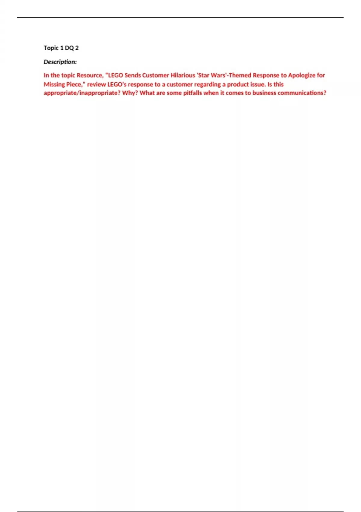 MGT 325 Topic 1 Assignment Communication Email to General Employee Audience MGT 325 Topic 1 Assignment Job 1 Communication Email MGT 325 Topic 1 Assignment Job 2 Communication MGT 325 Topic 1 DQ 1 (Business Communication Vs Academic Communication) MGT 325 Topic 1 DQ 2 (Pitfalls in Business Communications) MGT 325 Topic 1 DQ 1 plus DQ 2