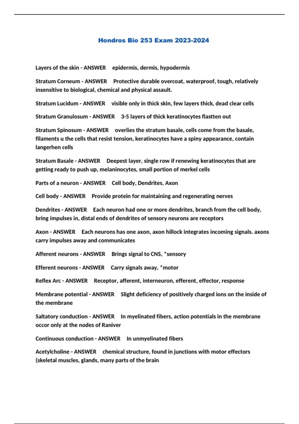Bio 253/Bio 253 Hondros/Hondros 253 A&P Packaged Exams