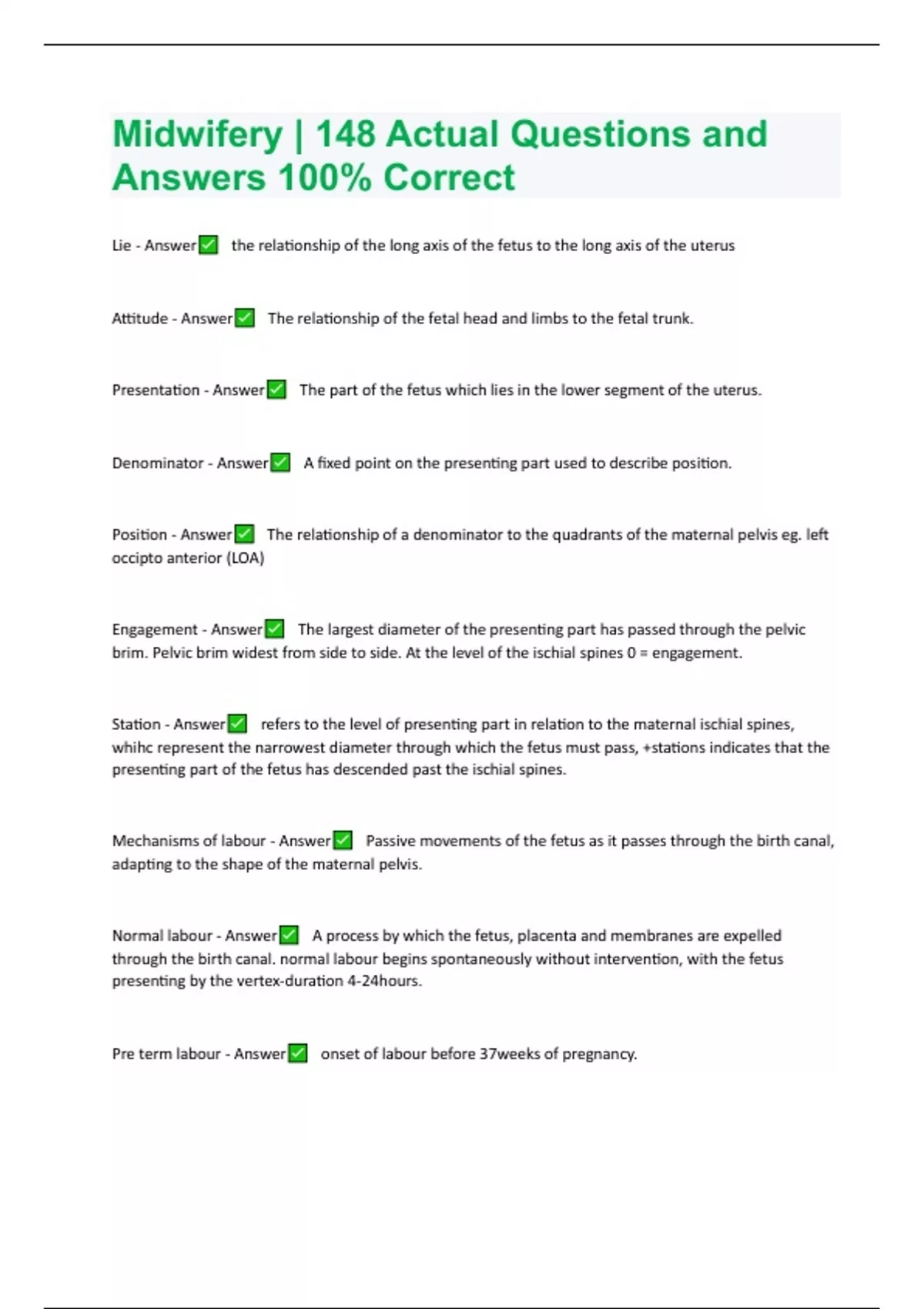 Midwifery | 148 Actual Questions and Answers 100% Correct