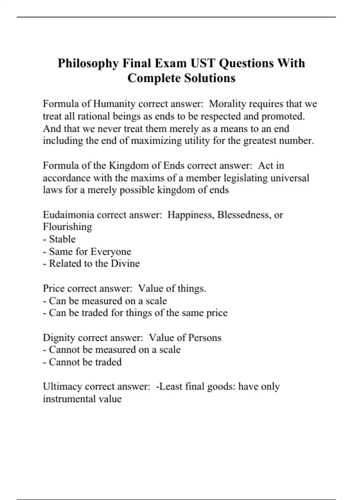 Philosophy Final Exam UST Questions With Complete Solutions
