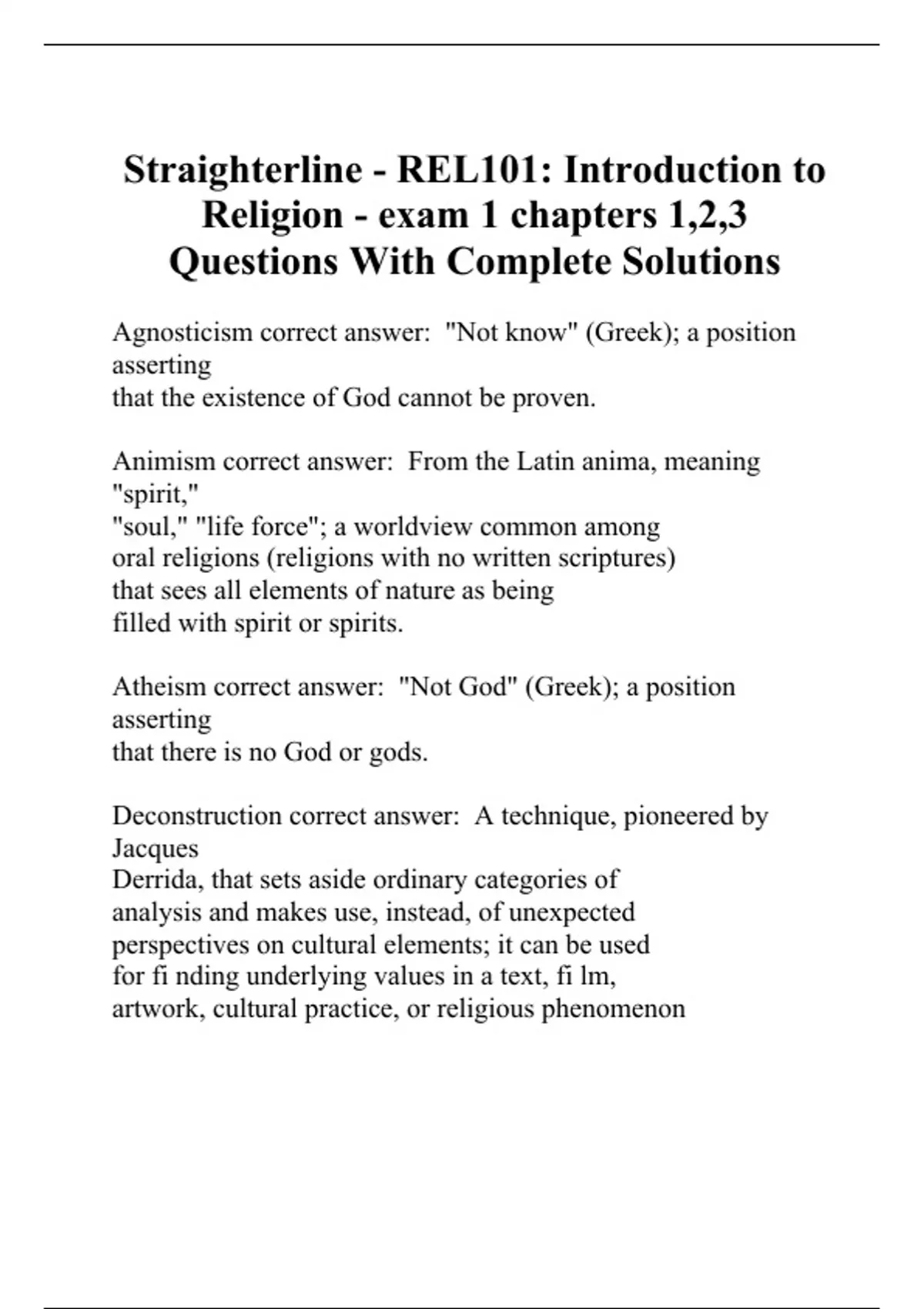Final Religion 101 Straighterline Questions With Complete Solutions