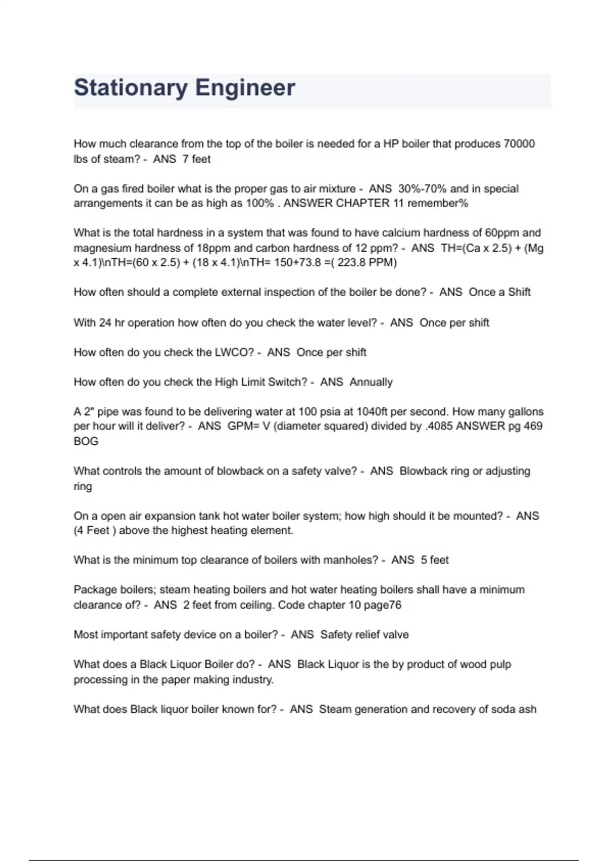 Ohio Stationary Steam Engineer Exam Questions And Answers