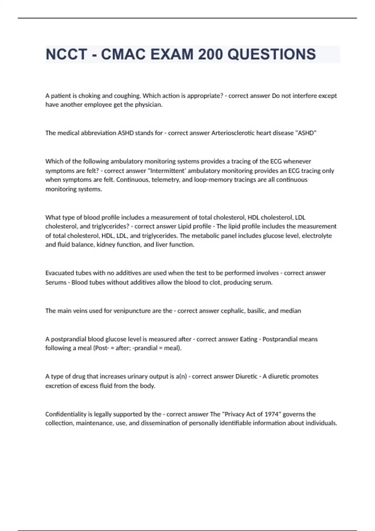 1 Exam (elaborations) AMCA CMAC Cert Exam Study Guide Review Exam 2023 passed 2 Exam (elaborations) AMCA CMAC EXAM 1 question with verified solution 2023 3 Exam (elaborations) AMCA CMAC EXAM 3 questions with 100% correct answers 4 Exam (elaborations) AMCA CMAC EXAM 4 questions with verified solution 2023 5 Exam (elaborations) AMCA CMAC Practice