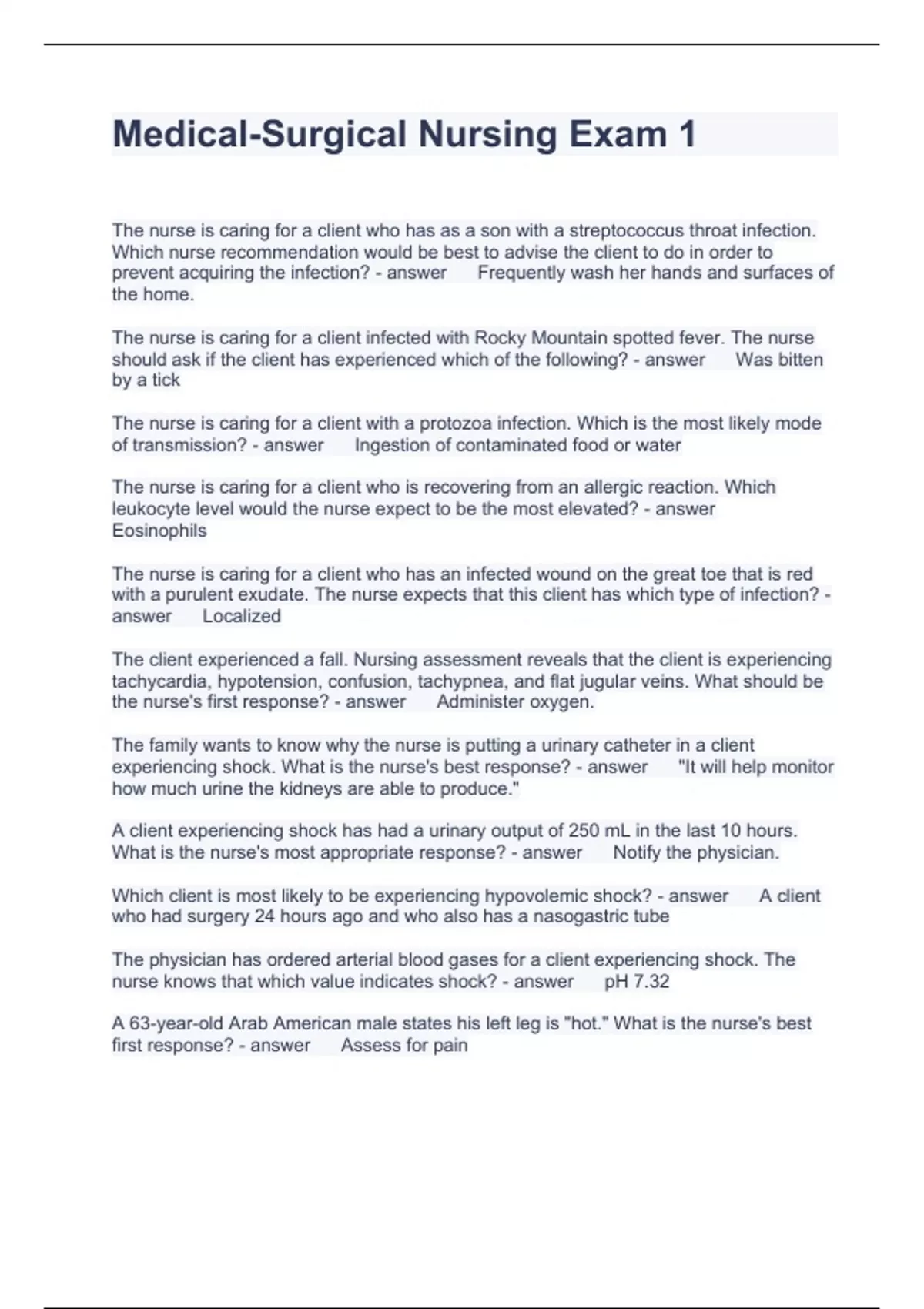 Exam (elaborations) Exam 1 Medical surgical Questions with correct Answers 2023 Exam (elaborations) Med 1 Q Questions with correct Answers 2023 Exam (elaborations) MED 1 Questions with correct Answers 2023 Exam (elaborations) Med 10 Questions with correct Answers Exam (elaborations) Med B Questions with complete Answers 2023 Exam (elabor