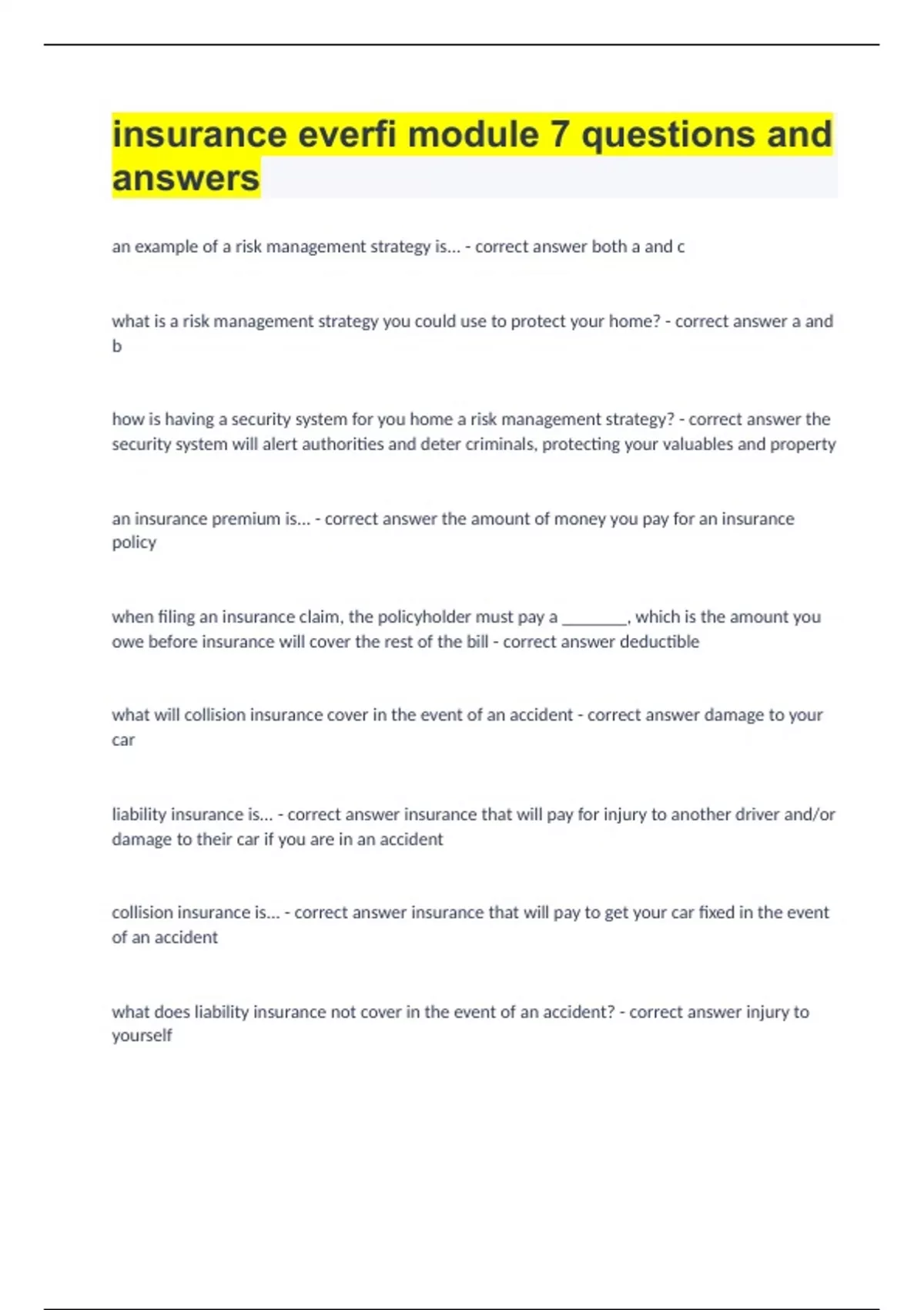 Everfi Module 7 Insurance and Taxes questions and answers 2023