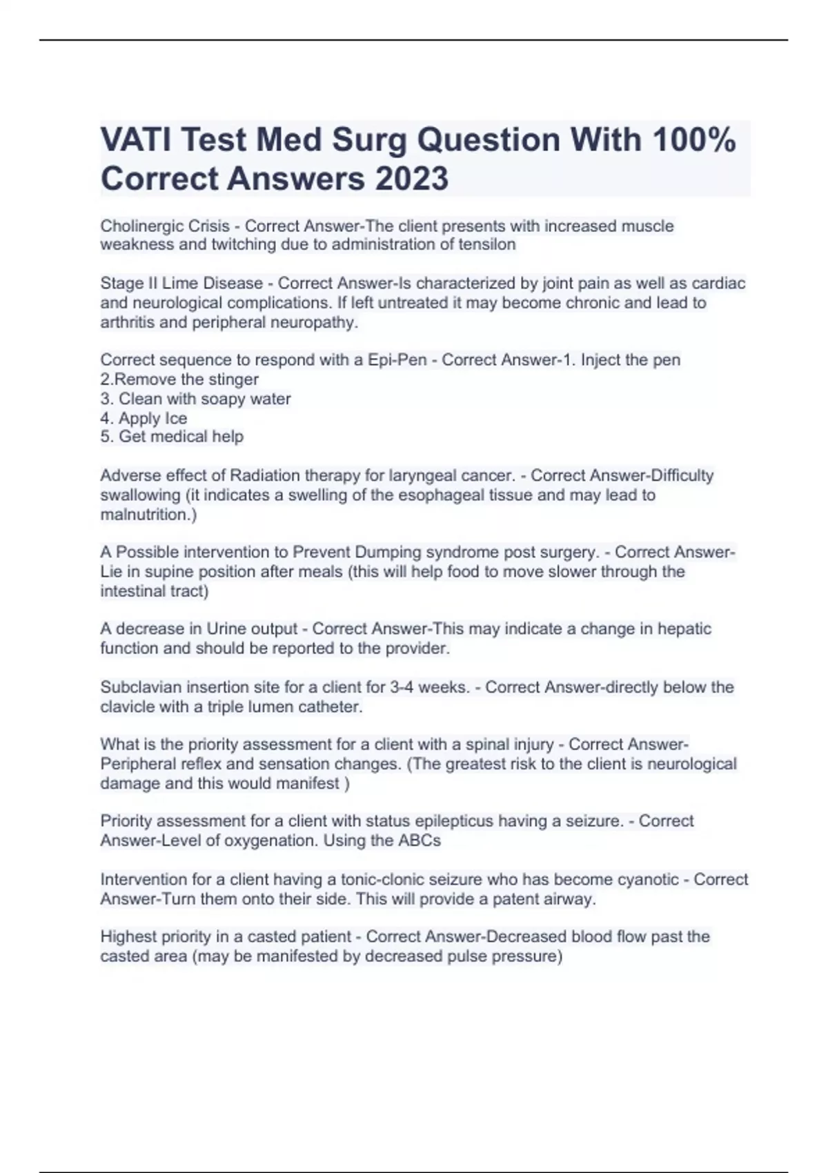 VATI Comprehensive Predictor NCLEX Questions with 100% Correct Answers 2023 VATI- Fundamentals Questions With 100% Correct Answers 2023 Med Surg VATI Assessment With 100% Correct Answers 2023 MEDSURG VATI ASSESSMENT 90 Q S WITH 100% CORRECT ANSWERS 2023 VATI RN Maternal Newborn 2023 Exam With 100% Correct Answers VATI Care of Children Exam