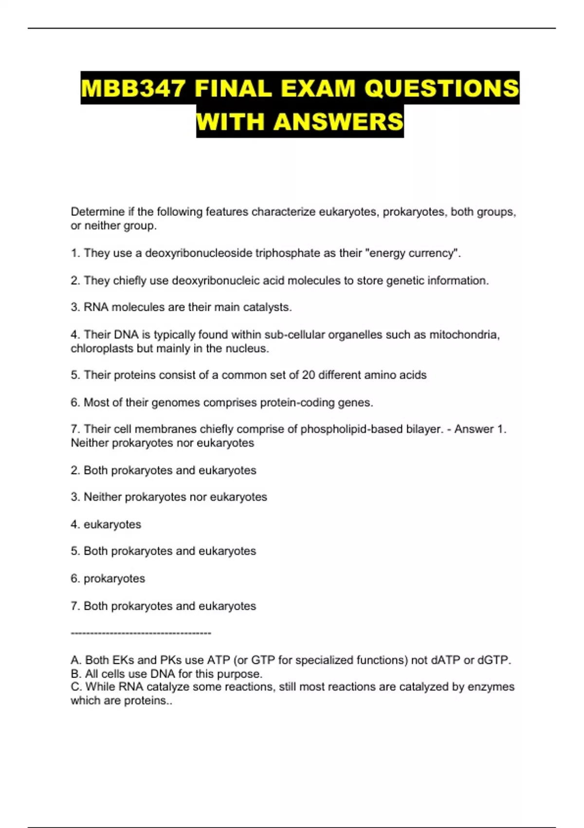 MBB347 FINAL EXAM QUESTIONS WITH ANSWERS