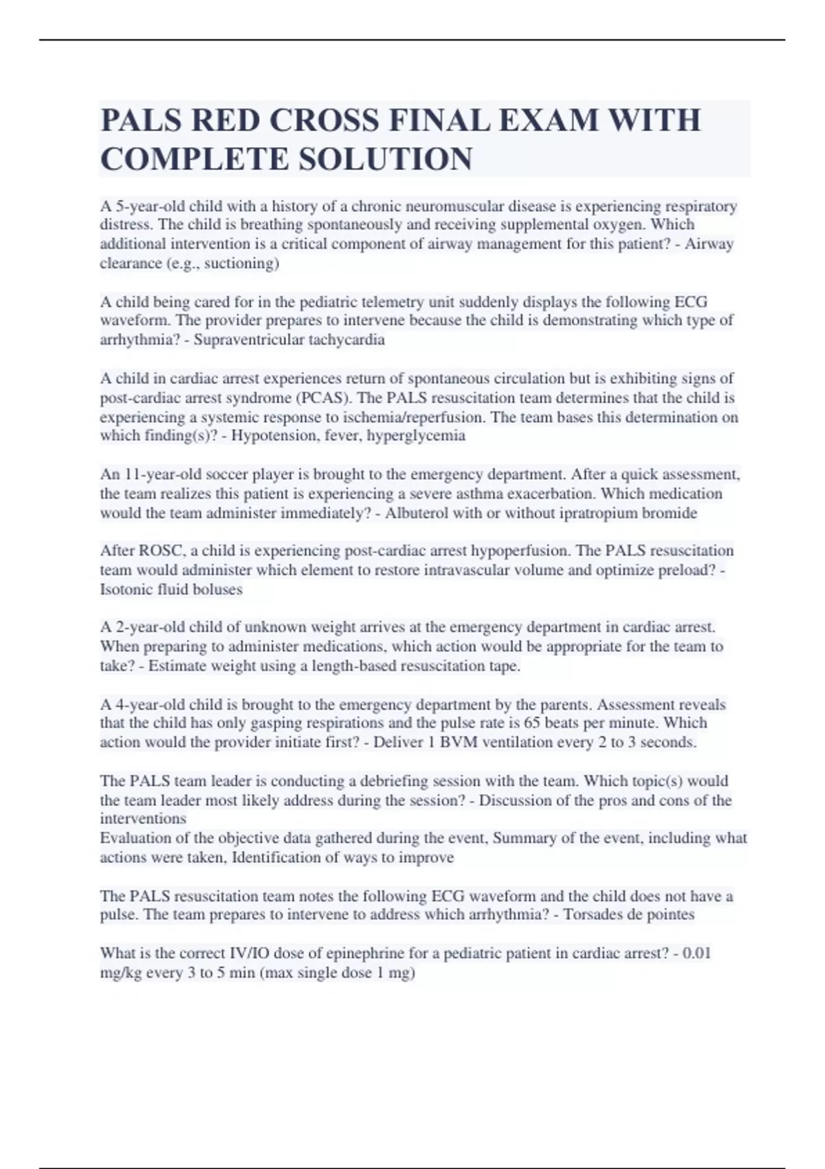PALS RED CROSS FINAL EXAM PACKAGE DEAL A SCORE
