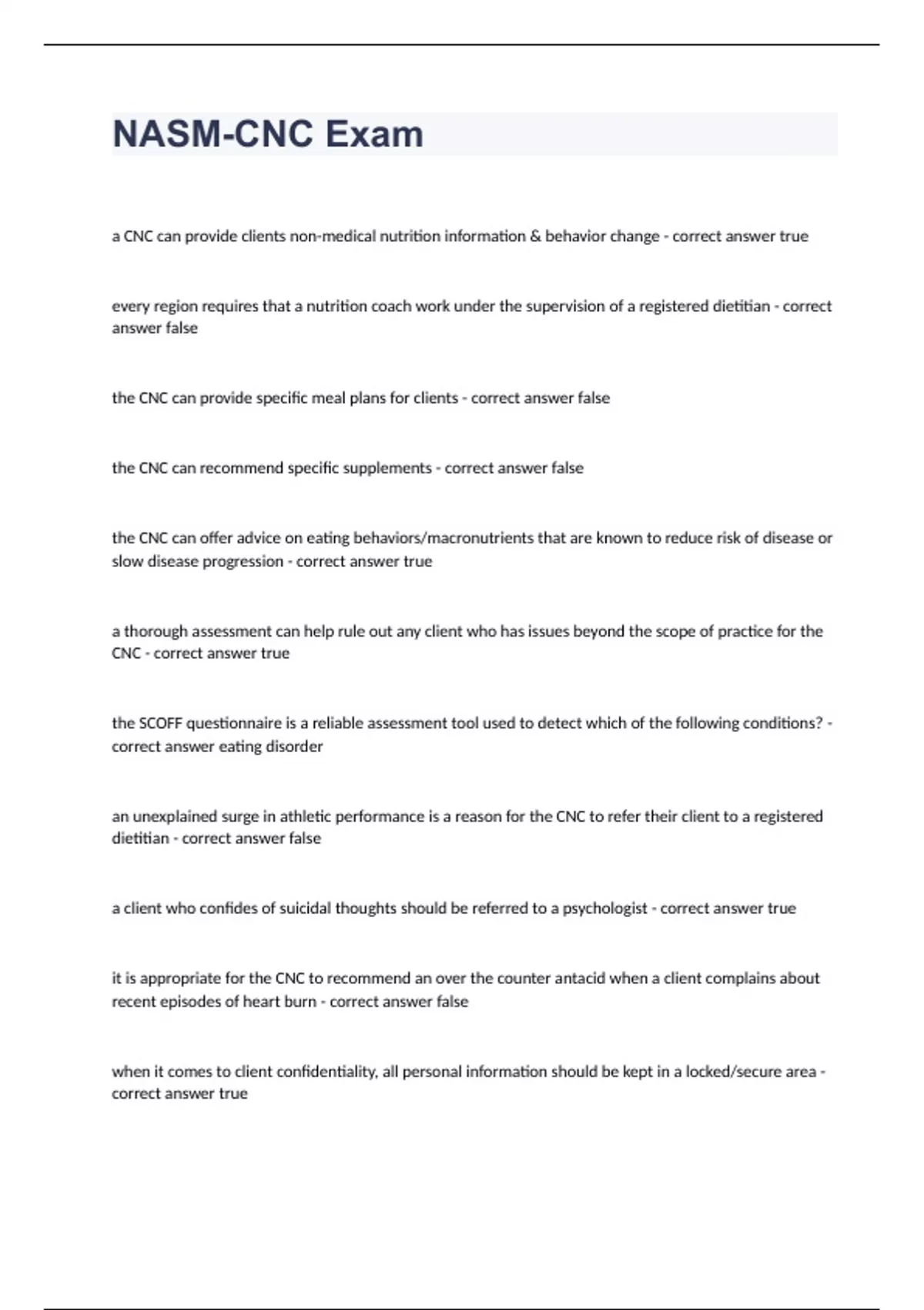 1 Exam (elaborations) NASM chapter 1 questions well answered rated A+ 2023 2 Exam (elaborations) NASM CPT 7 EXAM - Study Set 1 correctly answered rated A+ 2023 3 Exam (elaborations) NASM CPT 7th Edition (Chapter 1)fully solved 2023 4 Exam (elaborations) NASM CPT -7th Edition question n answers 2023 5 Exam (elaborations) NASM CPT 2023 question w