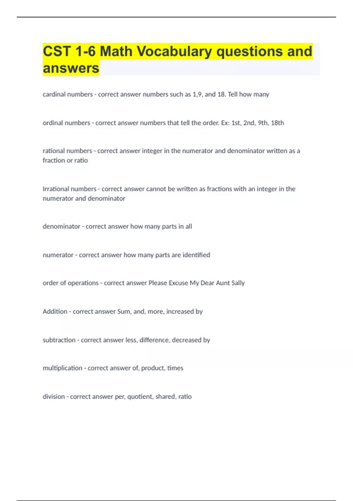 NYSCTE Multi-Subject CST Math Section questions and answers.