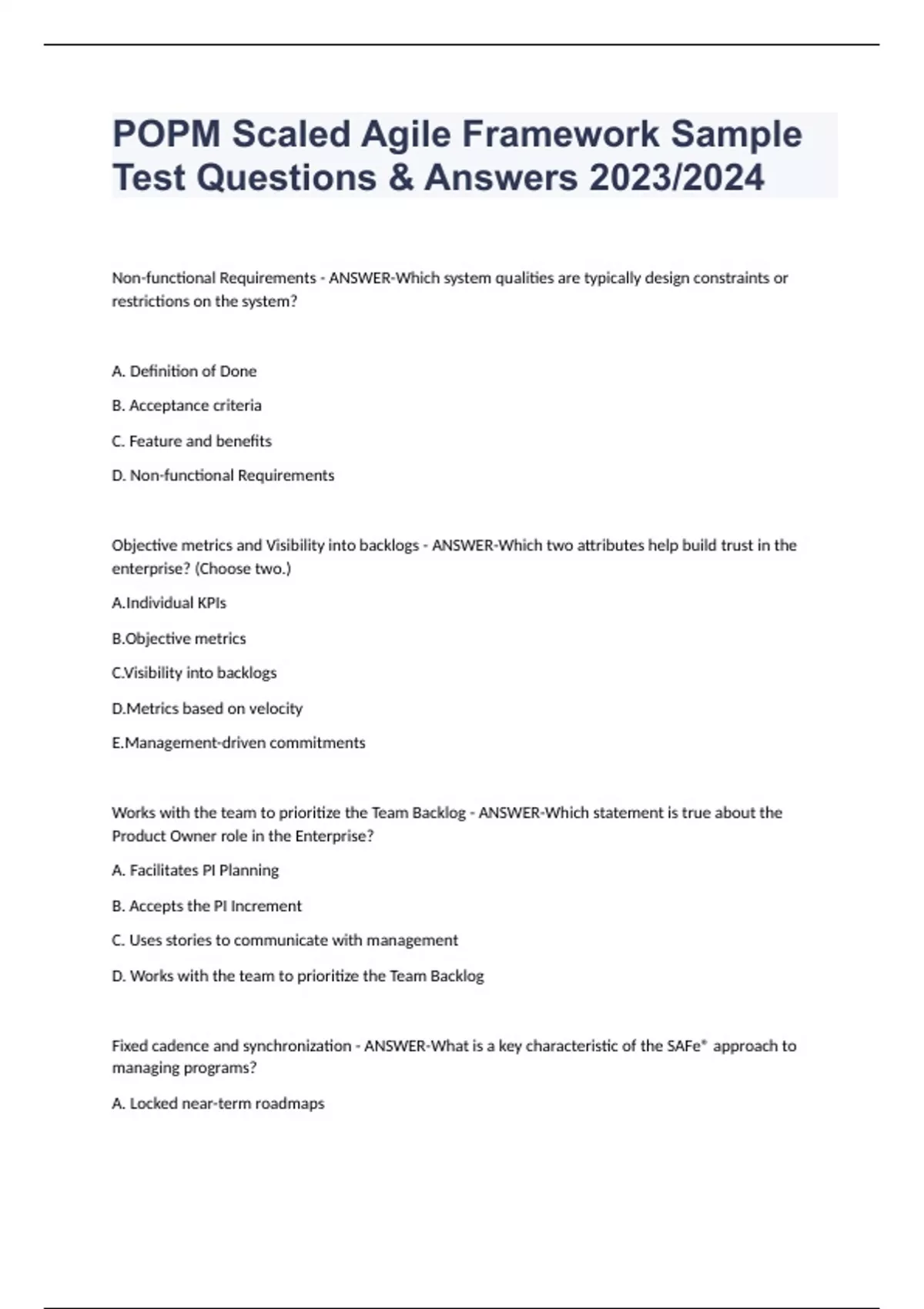 POPM Scaled Agile Framework Sample Test Questions & Answers 2023/2024