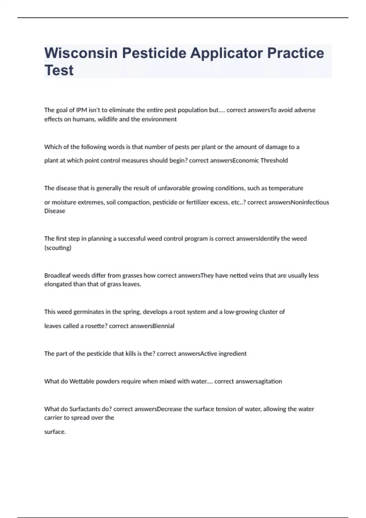 WI Pesticide Applicator exam 2023 with 100% complete solutions Pesticide Applicator Practice Exam- All 3 practice exams 2023 with 100% correct answers