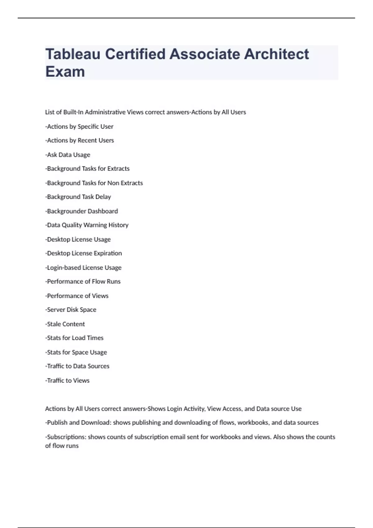 Tableau Server Certified Associate Exam 2023 with 100% correct answers Tableau Certified Associate Architect Exam 2023 with 100% correct answers
