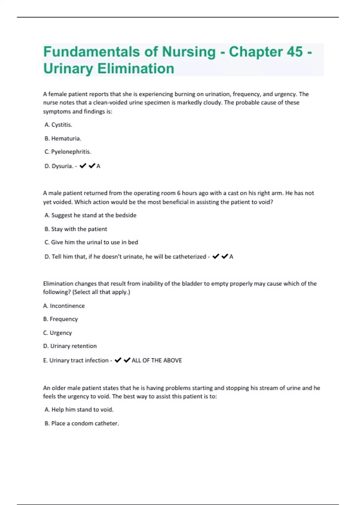Fundamentals Chapter 46 Urinary Elimination Questions And Answers!!