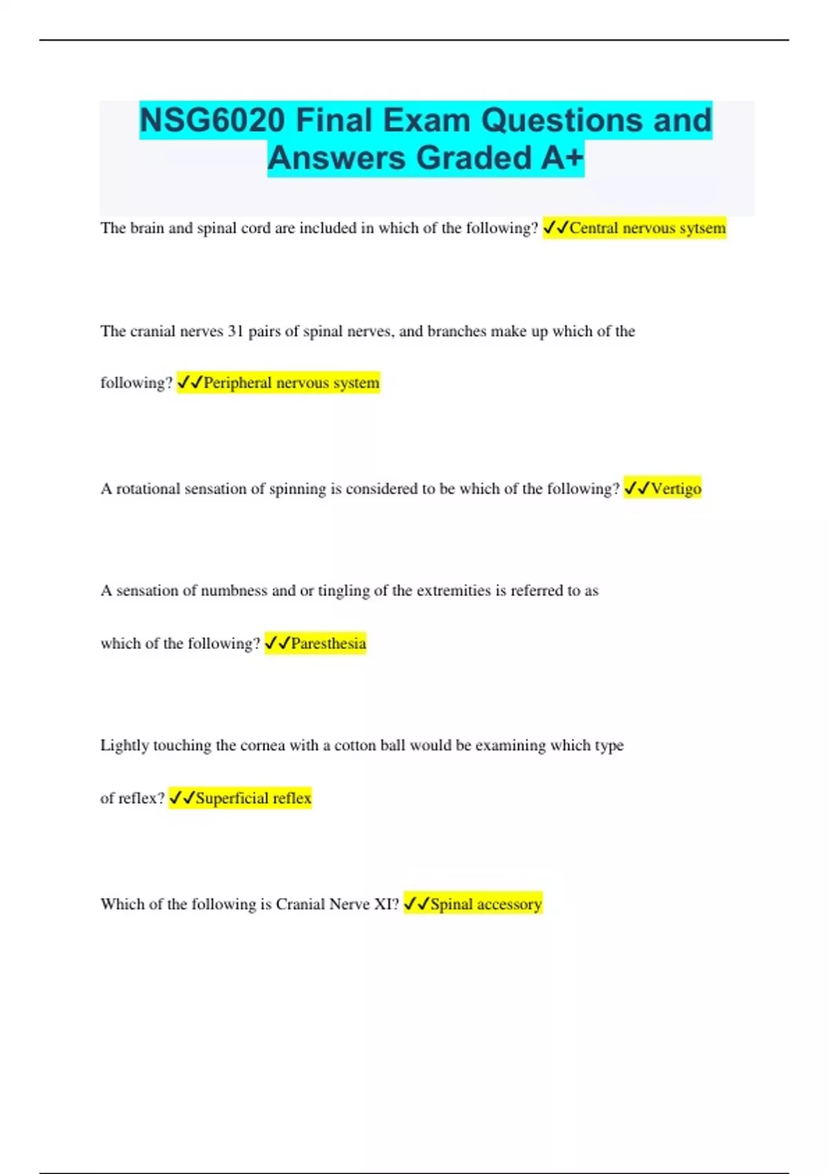 NSG6020 Bundled Exams Questions and Answers with Complete and Verified Solutions