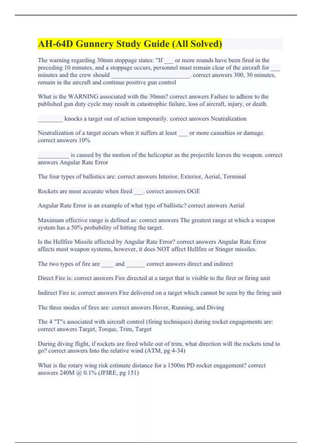 AH-64D Gunnery Study Guide (All Solved) AH-64E Gunnery skills (A+ Guaranteed) AH-64 GST RUCKER (ALL CORRECT) AH-64E Gunnery skills (A+ Graded) HGST Gunnery Study Guide AH-64D (with Complete Solutions) AH64D Gunnery (100% Accurate) AH-64 gunnery (100% Correct)