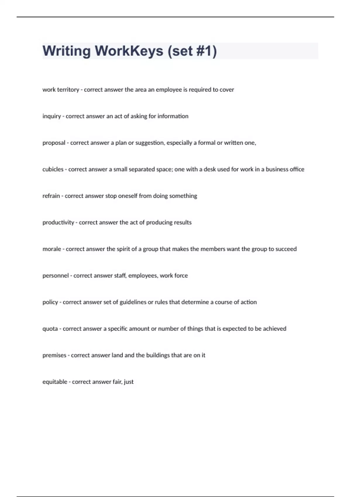 1 Exam (elaborations) ACT WorkKeys Math question and answers graded A+ 2023 2 Exam (elaborations) ACT WorkKeys Workplace Documents question n answers 2023 3 Exam (elaborations) Math Work Keys fully solved graded A+ 2023 4 Exam (elaborations) Ohio Means Jobs- WorkKeys® Workplace Documents Practice Test 1 2023 passed 5 Exam (elaborations) PO- Wor