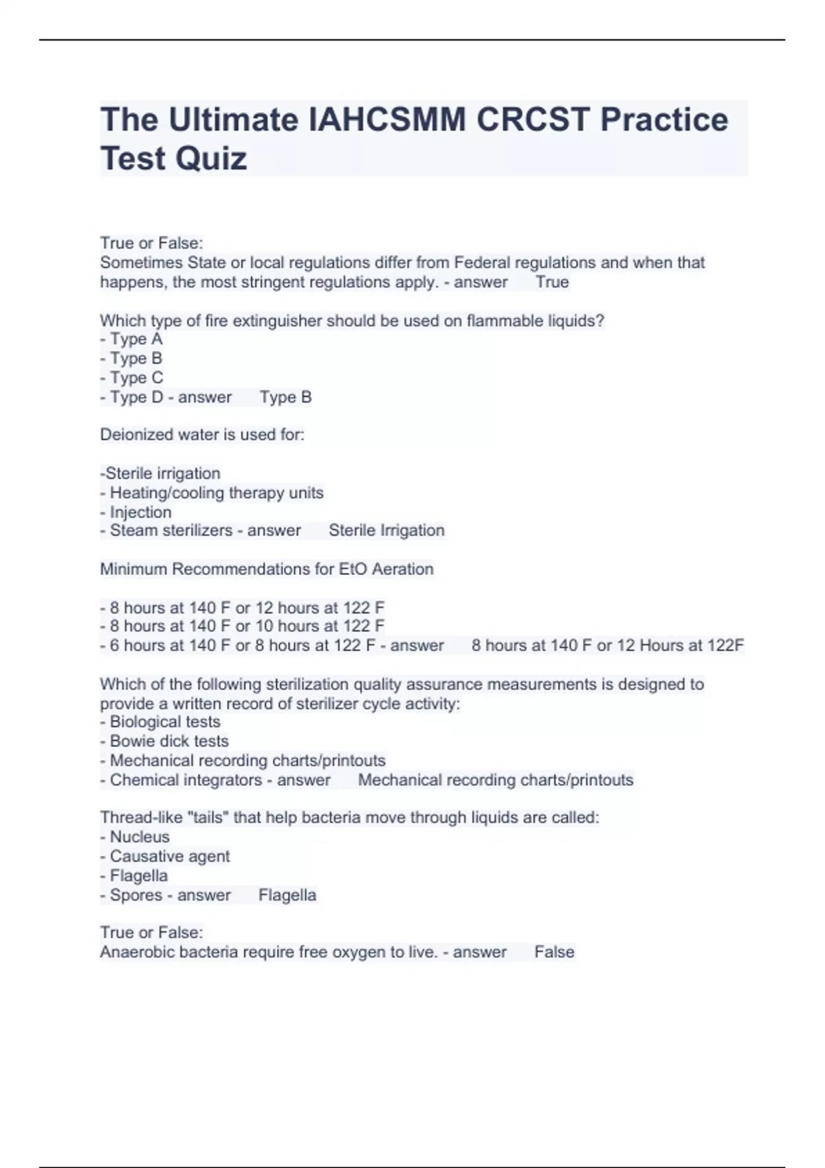 Exam (elaborations) IAHCSMM 8TH Edition Progress Test Questions with correct Answers A+ Exam (elaborations) IAHCSMM Chapter 1 Quiz Questions with correct Answers Graded A+ Exam (elaborations) IAHCSMM CHAPTER 1 Questions with correct Answers 100% Accurate Exam (elaborations) IAHCSMM CRCST 8TH EDITION1 QUESTIONS ANSWERED 100% CORRECT Exam (e