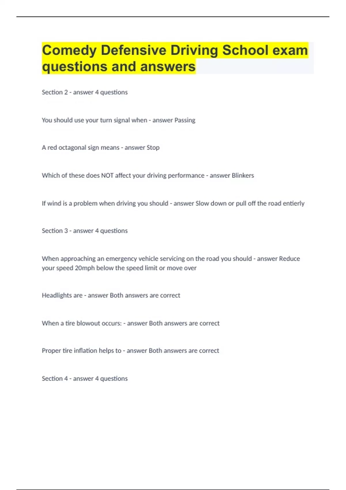 DEFENSIVE DRIVING COURSE BUNDLED EXAMS WITH 100% CORRECT ANSWERS