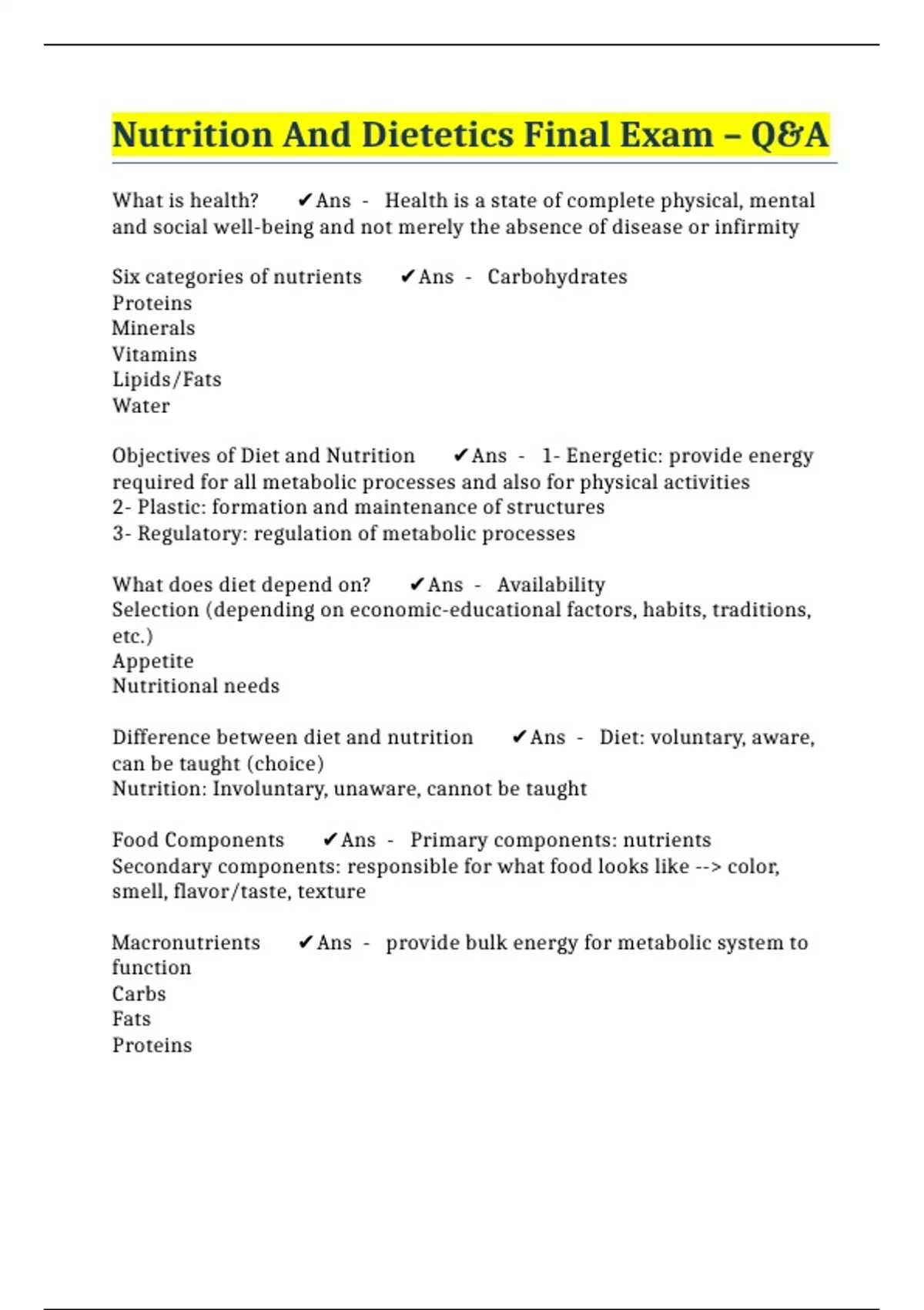 BUNDLE::: NUTRITION AND DIETETICS EXAMS COMPILED (LATEST UPDATE 2023)