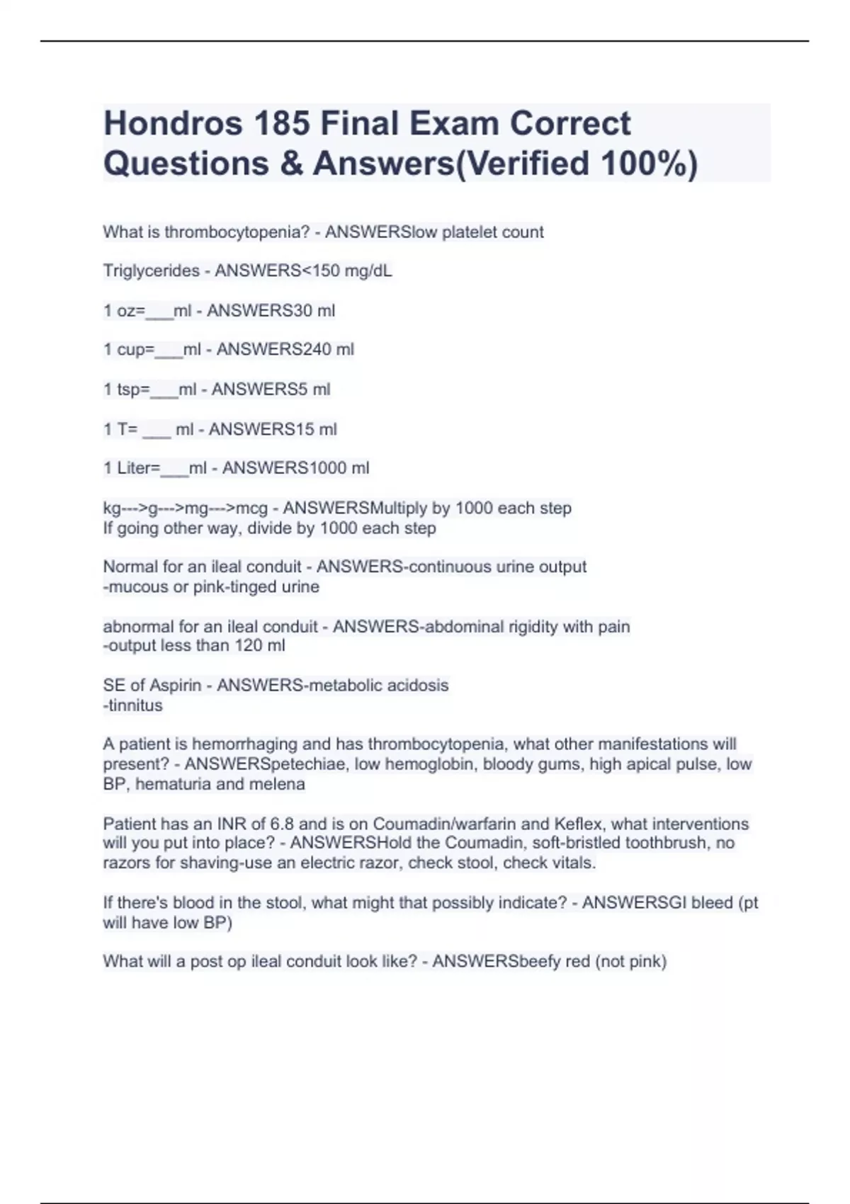 Hondros Nur 185 Final Exam Correct Questions & Answers(Rated A+)(FULL PACK SOLUTIONS)EXAM BUNDLEHondros Nur 185 Final Exam Correct Questions & Answers(Rated A+)(FULL PACK SOLUTIONS)EXAM BUNDLEHondros Nur 185 Final Exam Correct Questions & Answers(Rated A+)(FULL PACK SOLUTIONS)EXAM BUNDLE