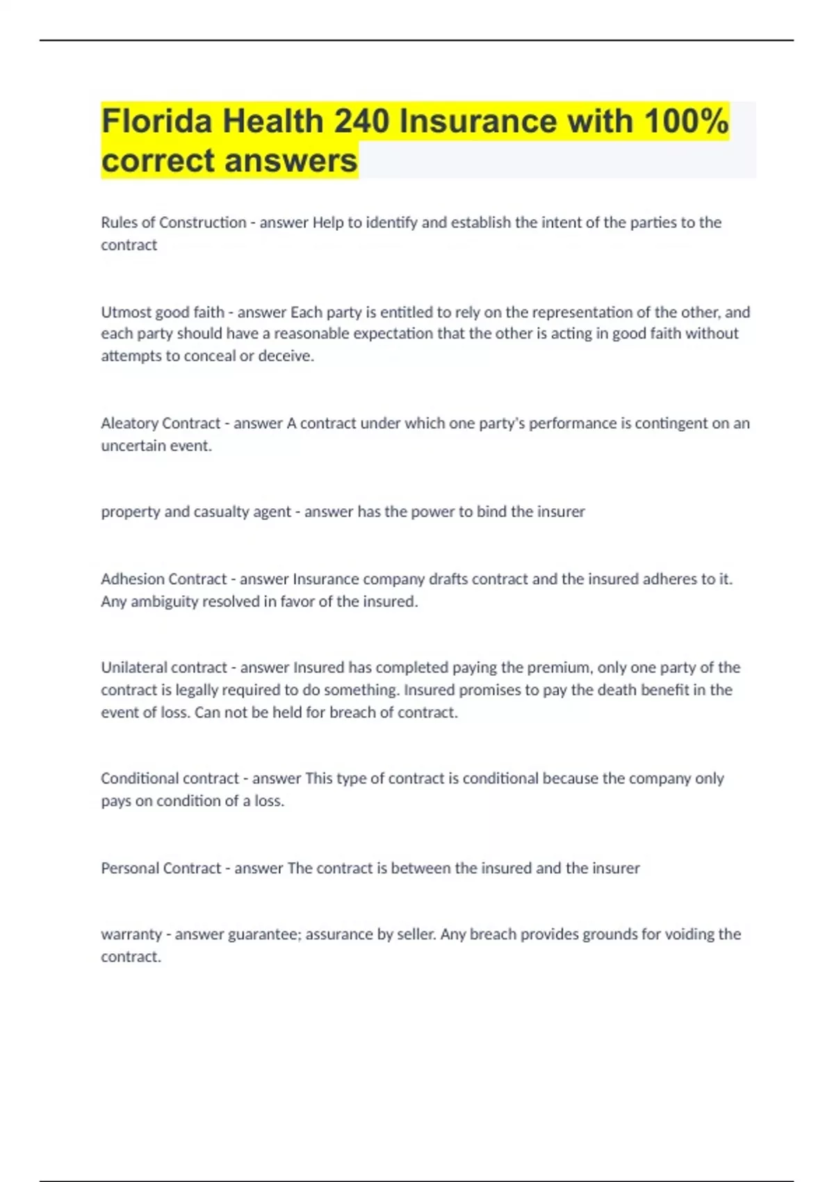 HEALTH INSURANCE CERTIFICATION EXAM PACK WITH 100% CORRECT ANSWERS|GUARANTEED SUCCESS