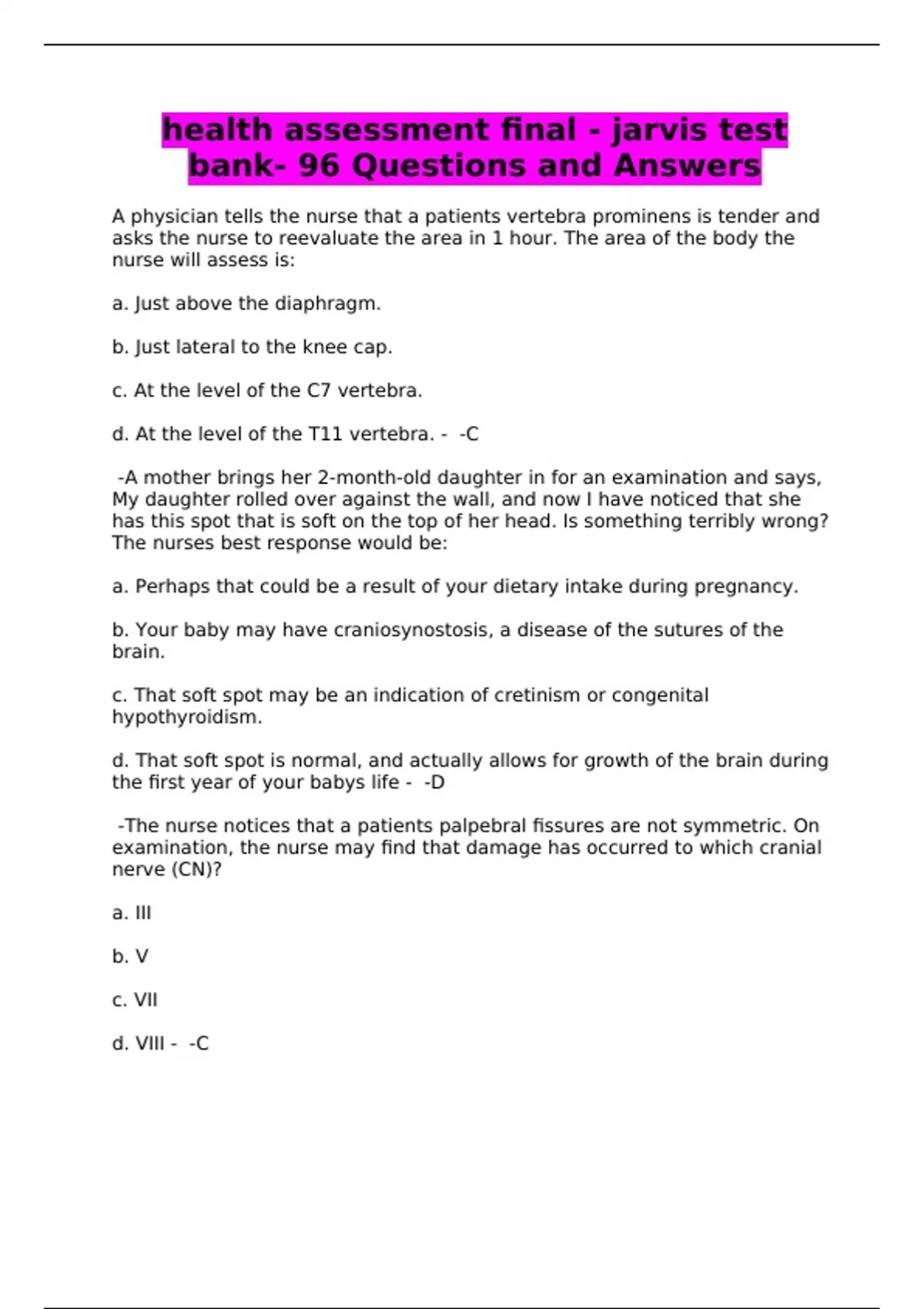 HEALTH ASSESSMENT EXAMS - QUESTIONS AND ANSWERS - BUNDLE