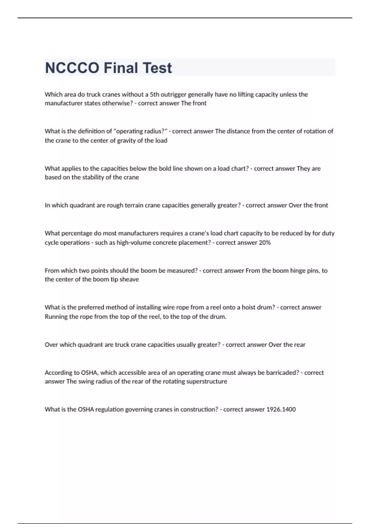 NCCCO BUNDLED exams questions and 100% correct answers