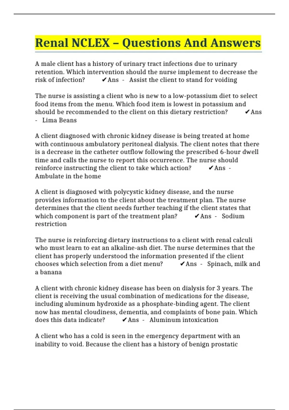 BUNDLE::: NCLEX RENAL & URINARY EXAMS