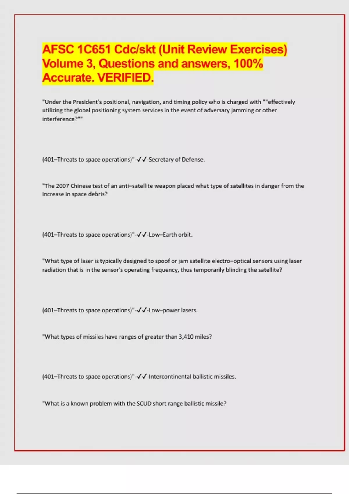 AFSC 1C651 Cdc/skt (Unit Review Exercises) Volume 2 Questions and answers, Verified. Latest update.