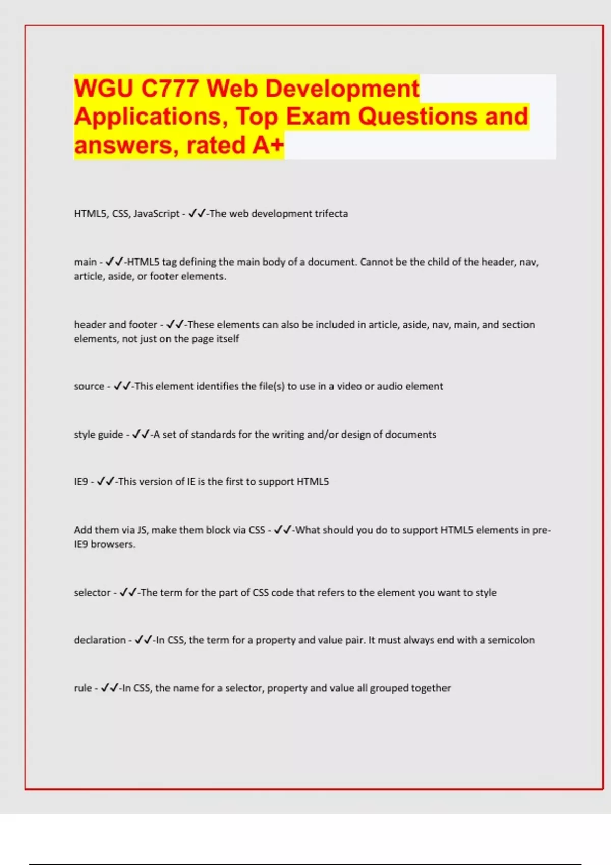 WGU C777 - Web Dev Applications. Exam Review. Full Coverage. Rated A+.