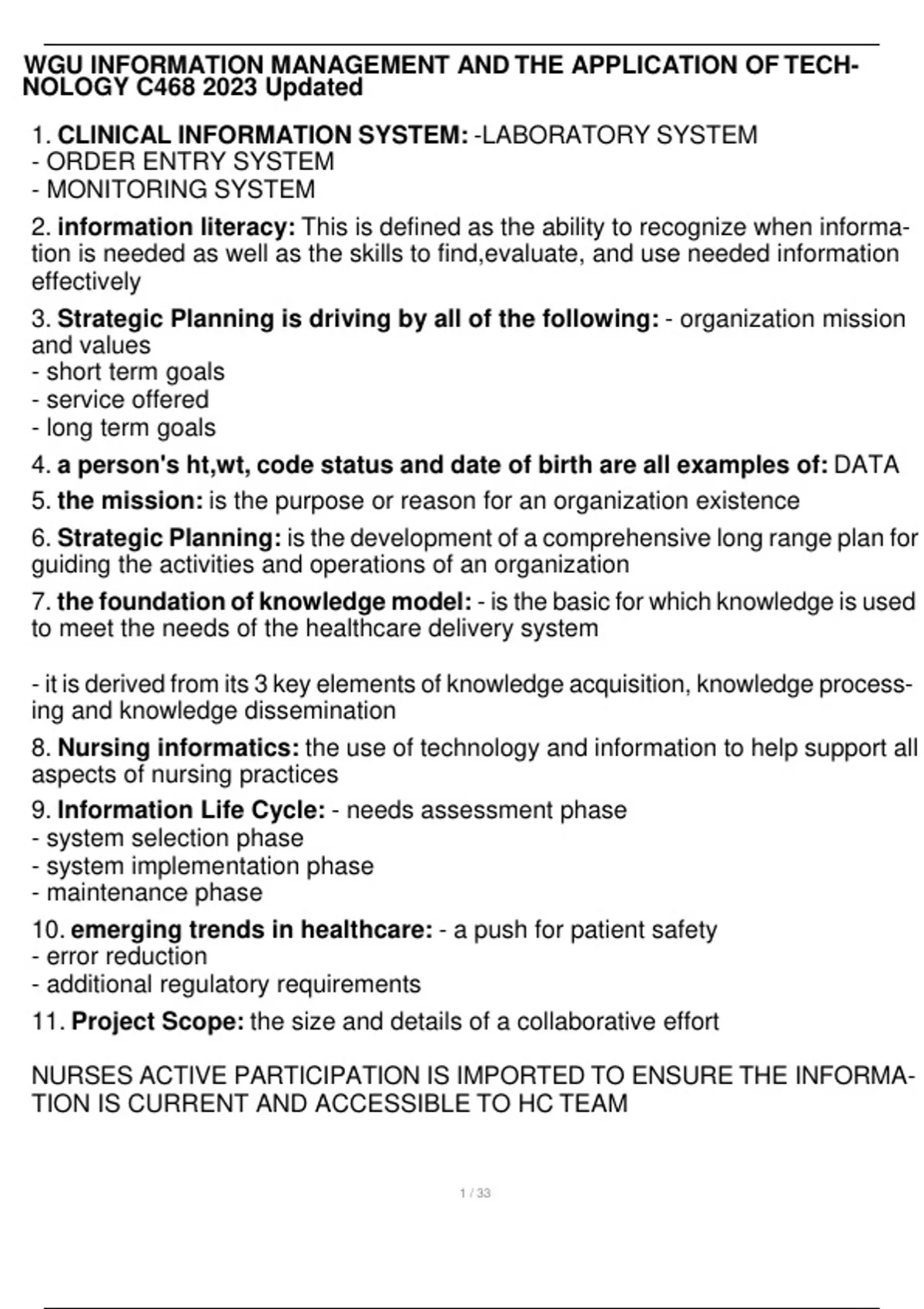 WGU INFORMATION MANAGEMENT AND THE APPLICATION OF TECH- NOLOGY C468 2023 Updated