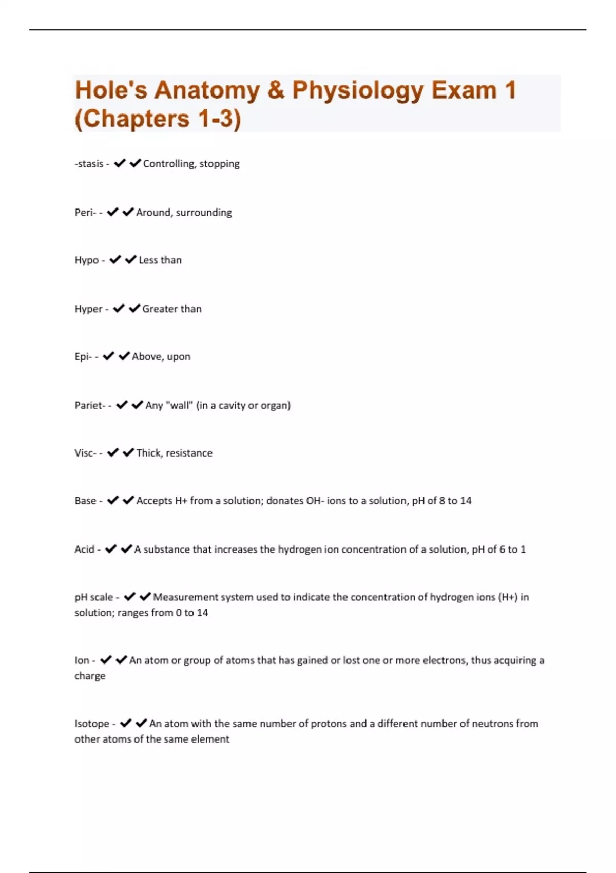 Hole's Anatomy & Physiology Exam 1 (Chapters 1-3) | 94 Questions and Answers(A+ Solution guide)