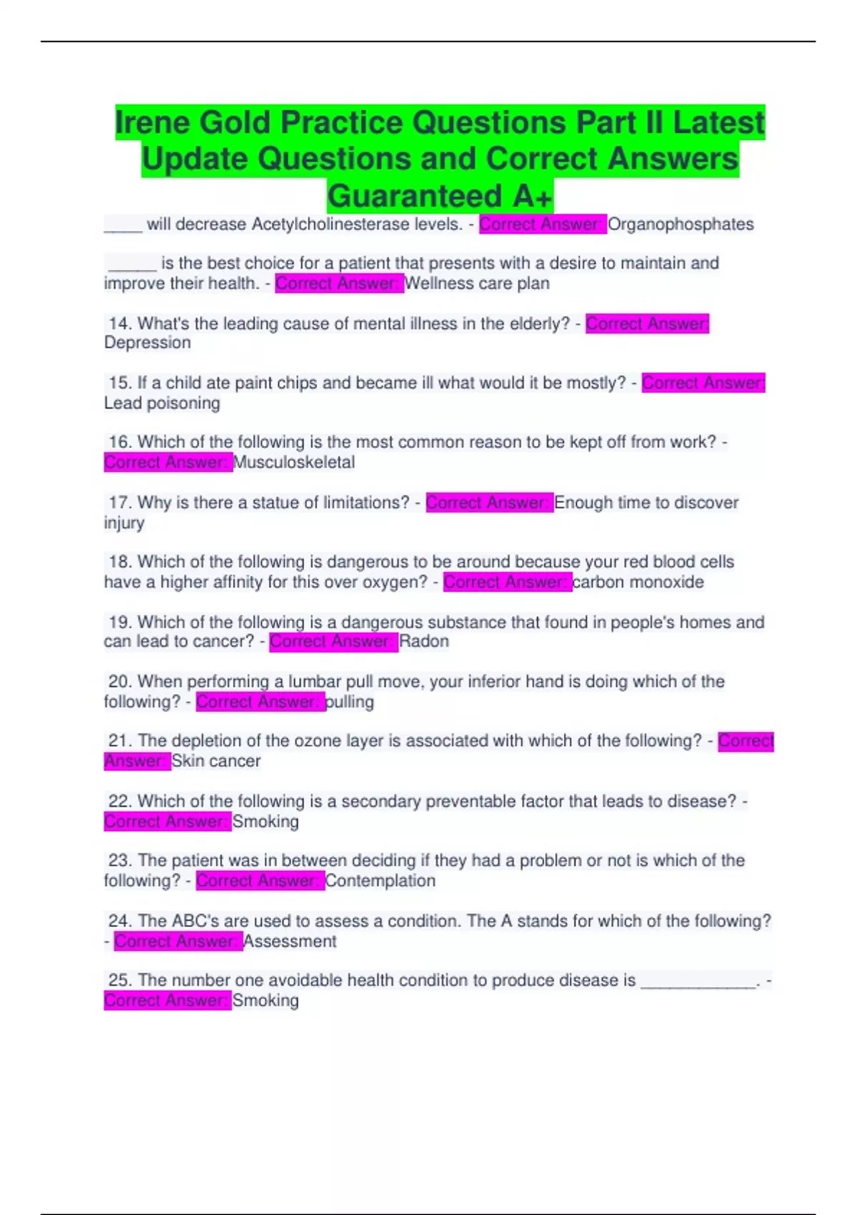 IRENE GOLD PRACTICE QUESTIONS PART II LATEST EEXAMS