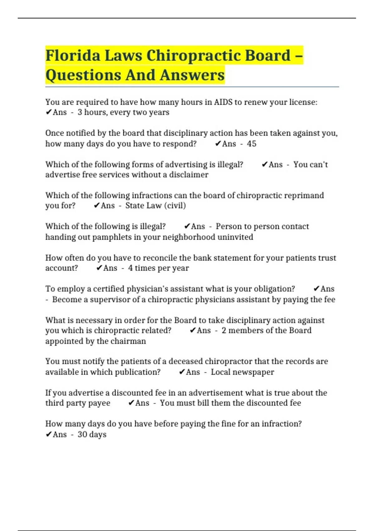 BUNDLE::: FLORIDA CHIROPRACTIC LAWS AND RULES EXAMS
