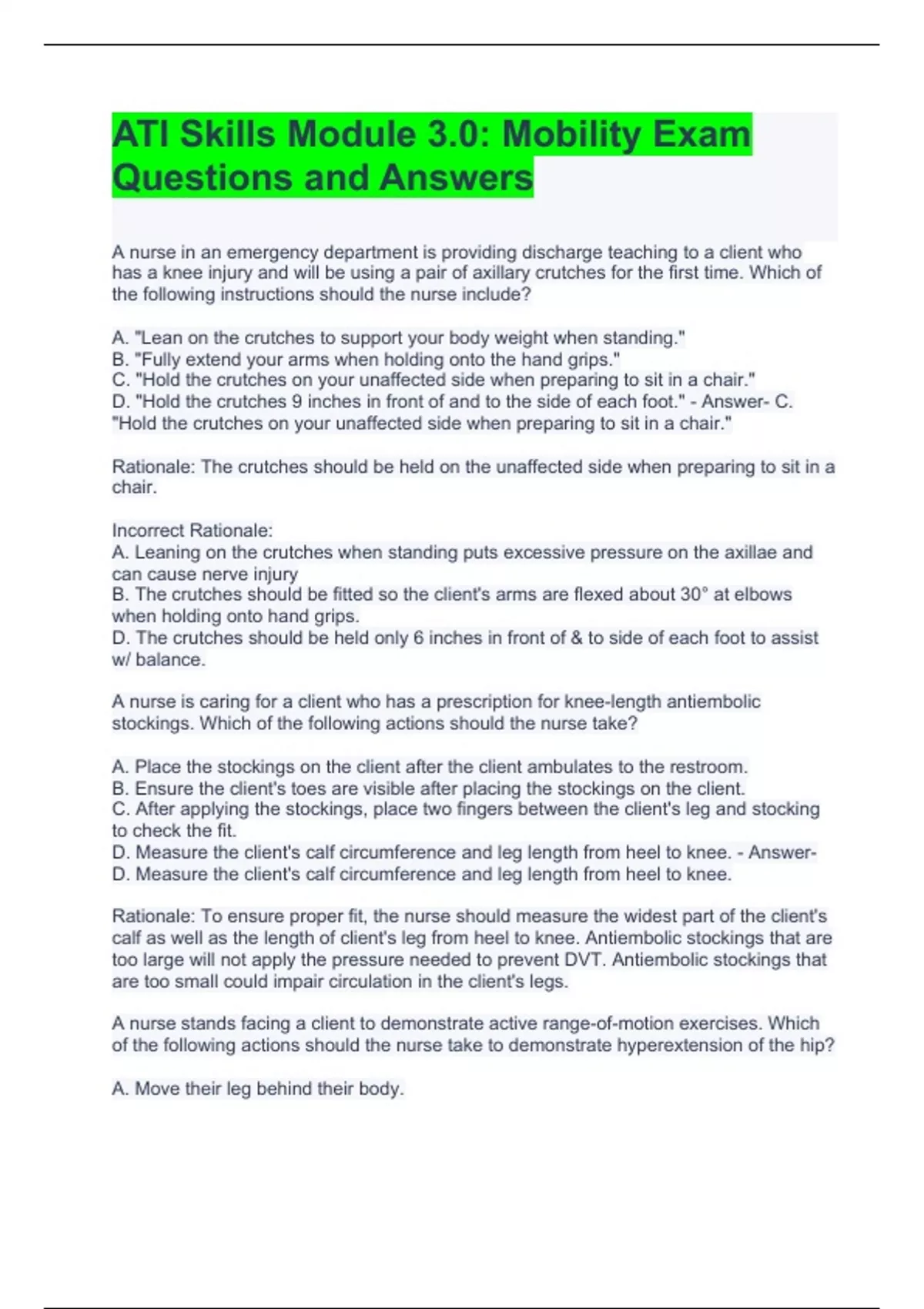 ATI Skills Module 3.0: Mobility Exam ATI: Skills module 3.0- Comprehensive physical assessment of an adult Exam Questions and Answers ATI: Skills Module 3.0: nutrition (posttest) ATI Skills Module 3.0: Oral/Topical Medication Administration Exam ATI Skills Module 3.0 - Urinary Elimination Exam 2023 ATI skills module 3.0 airway management Exam
