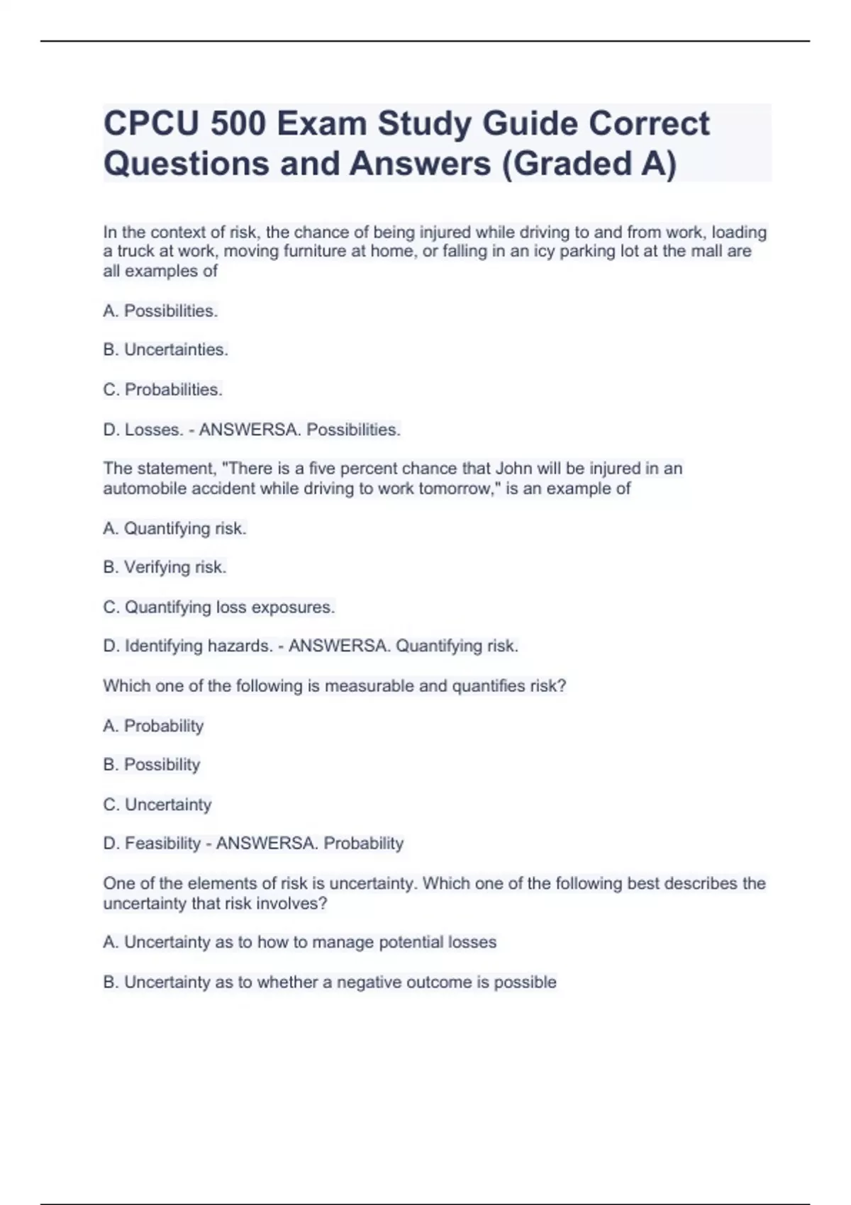 CPCU 500 Exam BUNDLE Questions and Answers (100% Verified)