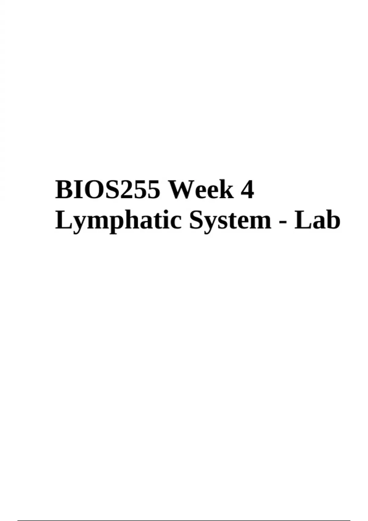 BIOS 255 Week 1: Blood Lab Report | BIOS255 Week 3 Cardiovascular System - Blood Vessels Lab Report | BIOS 255 Week 6 Respiratory System - Anatomy Lab Report (2023/2024), BIOS255 Week 4 - Lymphatic System Lab Report & BIOS 255 Week 7 Respiratory System Ph