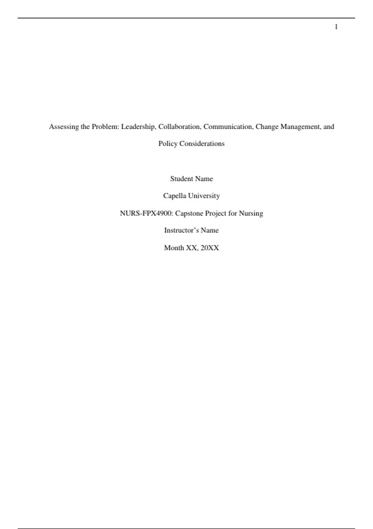 NURS-FPX4900: Capstone Project for Nursing (GRADED A+ ASSESSMENTS) PACKAGE DEAL Assessing the Problem: Leadership, Collaboration, Communication, Change Management, and Policy Considerations Assessing the Problem: Quality, Safety and Cost Considerations Assessing the Problem: Technology, Care Coordination, and Community Resources Considerations