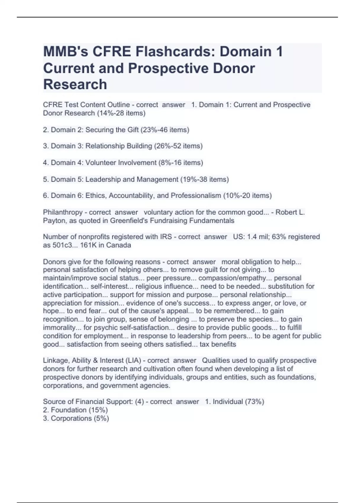 CFRE 64 Question and answers 100% correct 2023 Exam (elaborations) CFRE Question and answers rated A+ 2023 Exam (elaborations) CFRE Questions with complete solution 2023 Exam (elaborations) CFRE Domain Question and answers correctly solved 2023 Exam (elaborations) CFRE Exam Question and answers 2023 verified to pass Exam (elaborations) CF