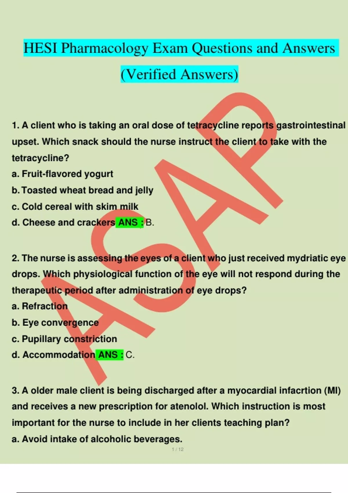 Exam (elaborations) HESI PHARMACOLOGY QUESTIONS WITH ANSWERS GRADED A LATEST VERSION DOWNLOAD TO SCORE A 2 Exam (elaborations) HESI PHARMACOLOGY ( 150 QUESTIONS AND ANSWERS) GRADED A RATED 5 STAR 3 Exam (elaborations) HESI PHARMACOLOGY ACTUAL EXAM QUESTIONS 2023 (65 Q&A) 100% 4 Exam (elaborations) HESI PHARMACOLOGY ACTUAL EXAM QUESTIONS 2023 (55