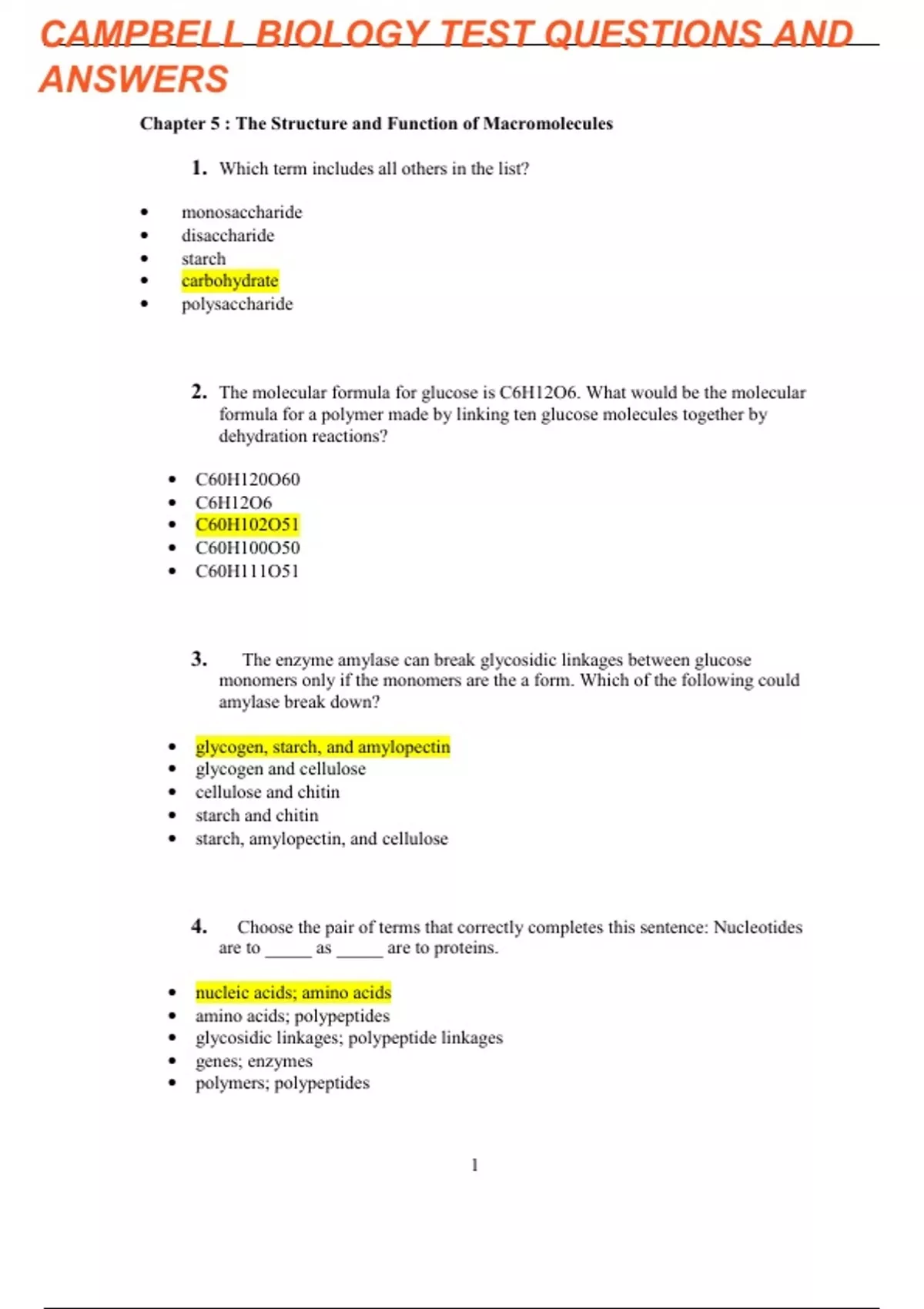 Test Bank - Campbell Biology (5 test banks) | All Chapters