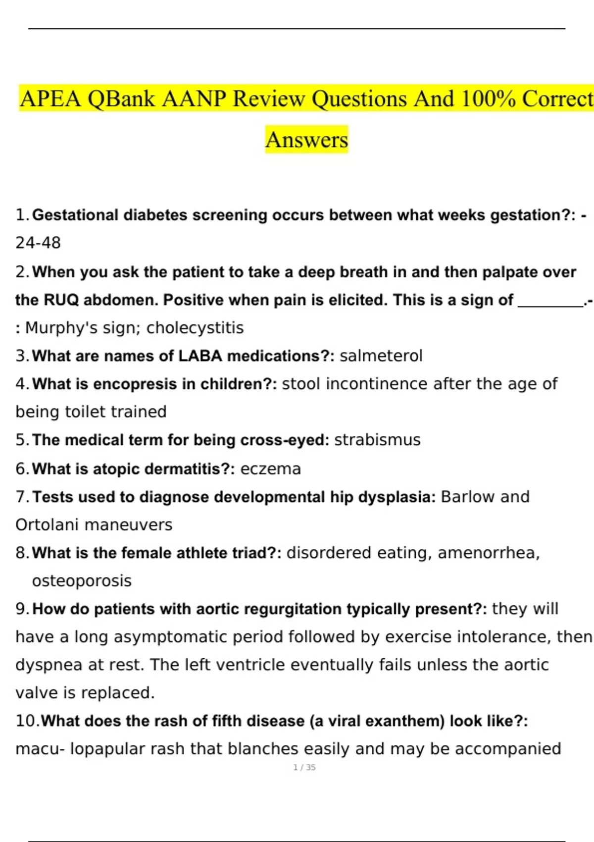 APEA QBank AANP Review Questions Correctly Answered