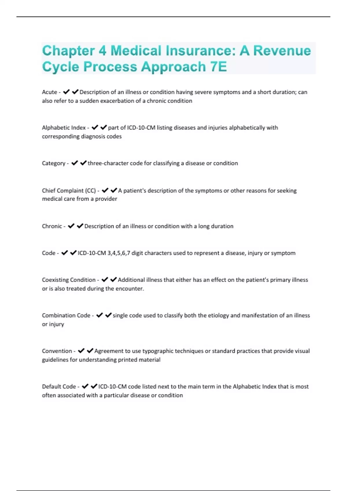 Medical Insurance 7e-A Revenue Cycle Process Approach Bundled Exams With Complete Solutions(100% Verified )